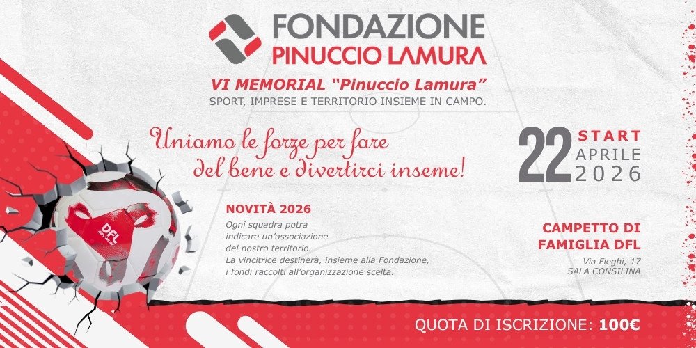 Torna anche quest’anno uno degli appuntamenti più sentiti e partecipati del territorio: il Memorial Pinuccio Lamura, torneo aziendale di calcio a 5 nato per ricordare la figura carismatica e intraprendnete di Pinuccio Lamura, fondatore di DFL – Gruppo Lamura di Sala Consilina (SA). Un’iniziativa che non celebra soltanto lo sport, ma anche l’amicizia, la collaborazione